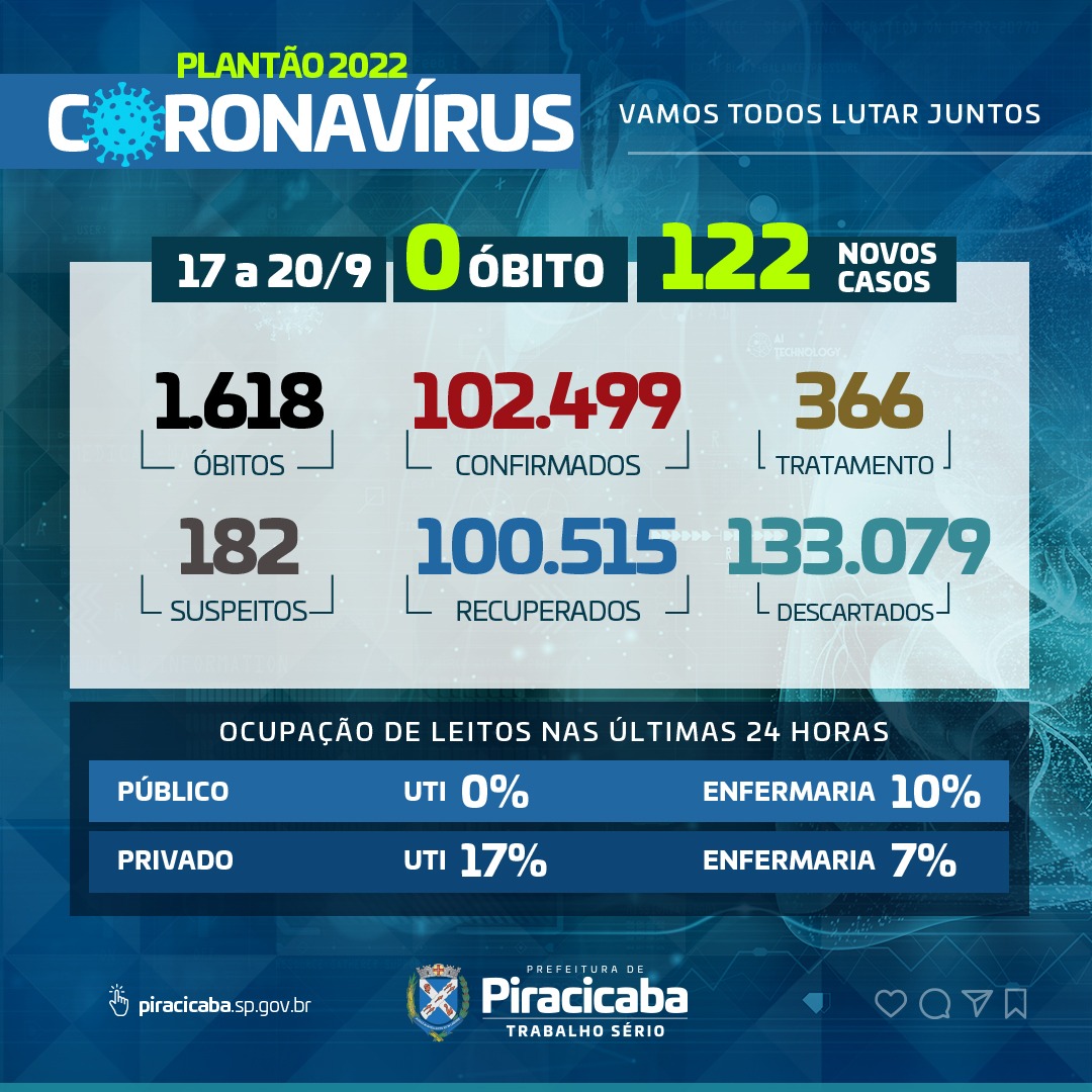 A cidade tem 122 novos casos confirmados, entre os dias 17/09 a 20/09, sendo: