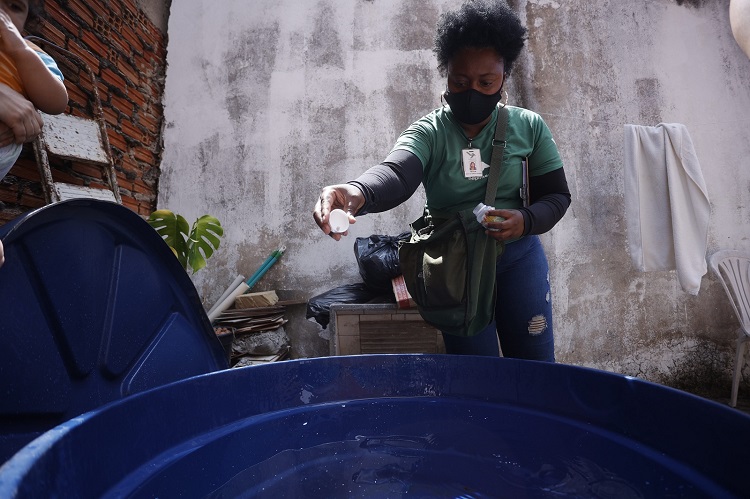 Agente de dengue faz verificação de possíveis focos de dengue em residências da região Norte