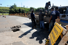 O secretário de Obras, Arthur Ribeiro informou que houve uma ruptura no tabuleiro da ponte, que resultou num buraco no concreto da via. “Os reparos serão realizados na quarta e quinta-feira, com aplicação de concreto de secagem rápida e ultra resistência, mas o tempo de cura do material permitirá que a ponte seja liberada no domingo, final da tarde.”