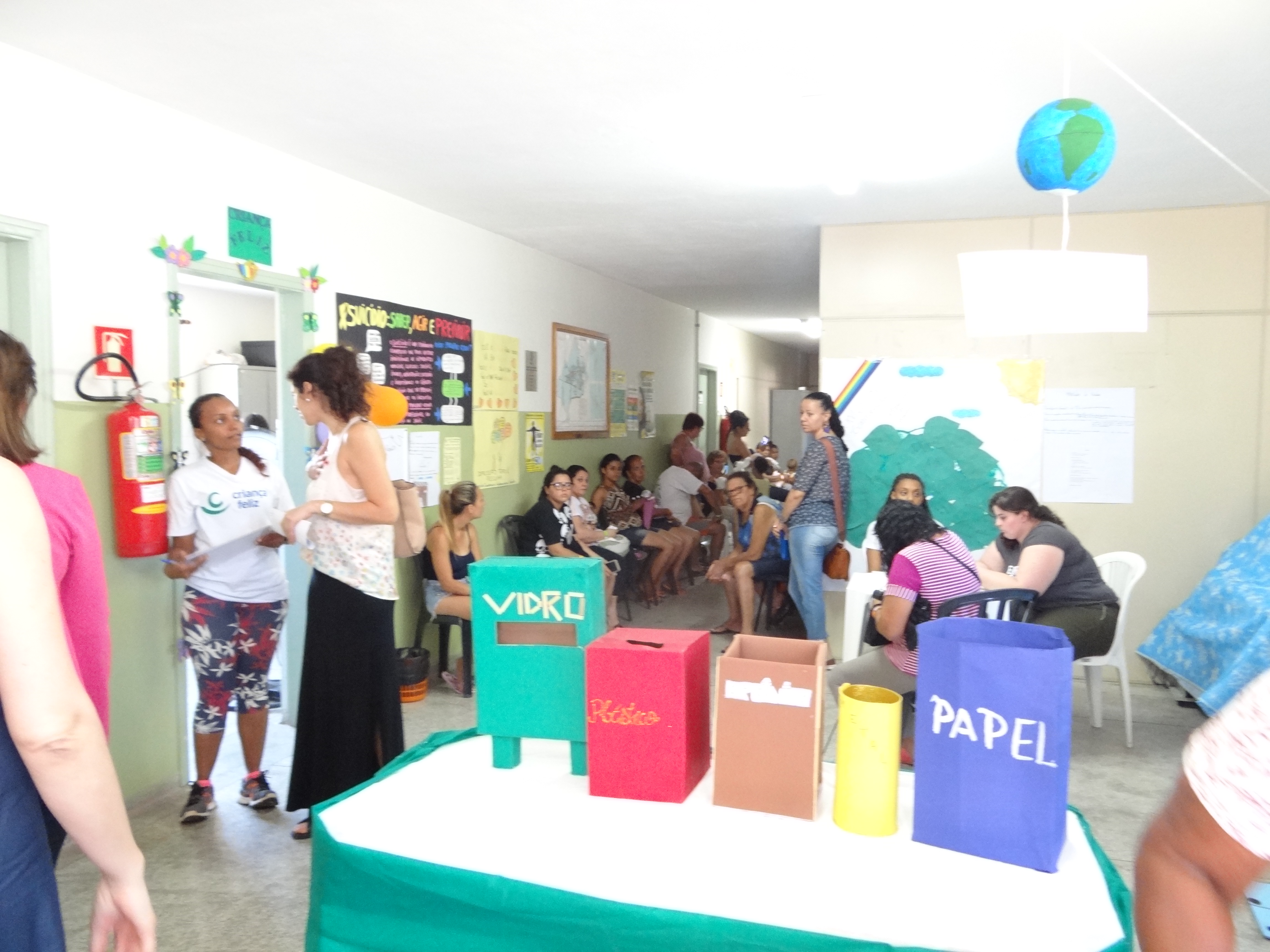 Exposição dos trabalhos do Gerações, em primeiro plano. Logo atrás mesa com funcionárias da Semtre fazendo carteira de trabalho e ao fundo as filas para o Cadastro Único e cabeleireiro e manicure