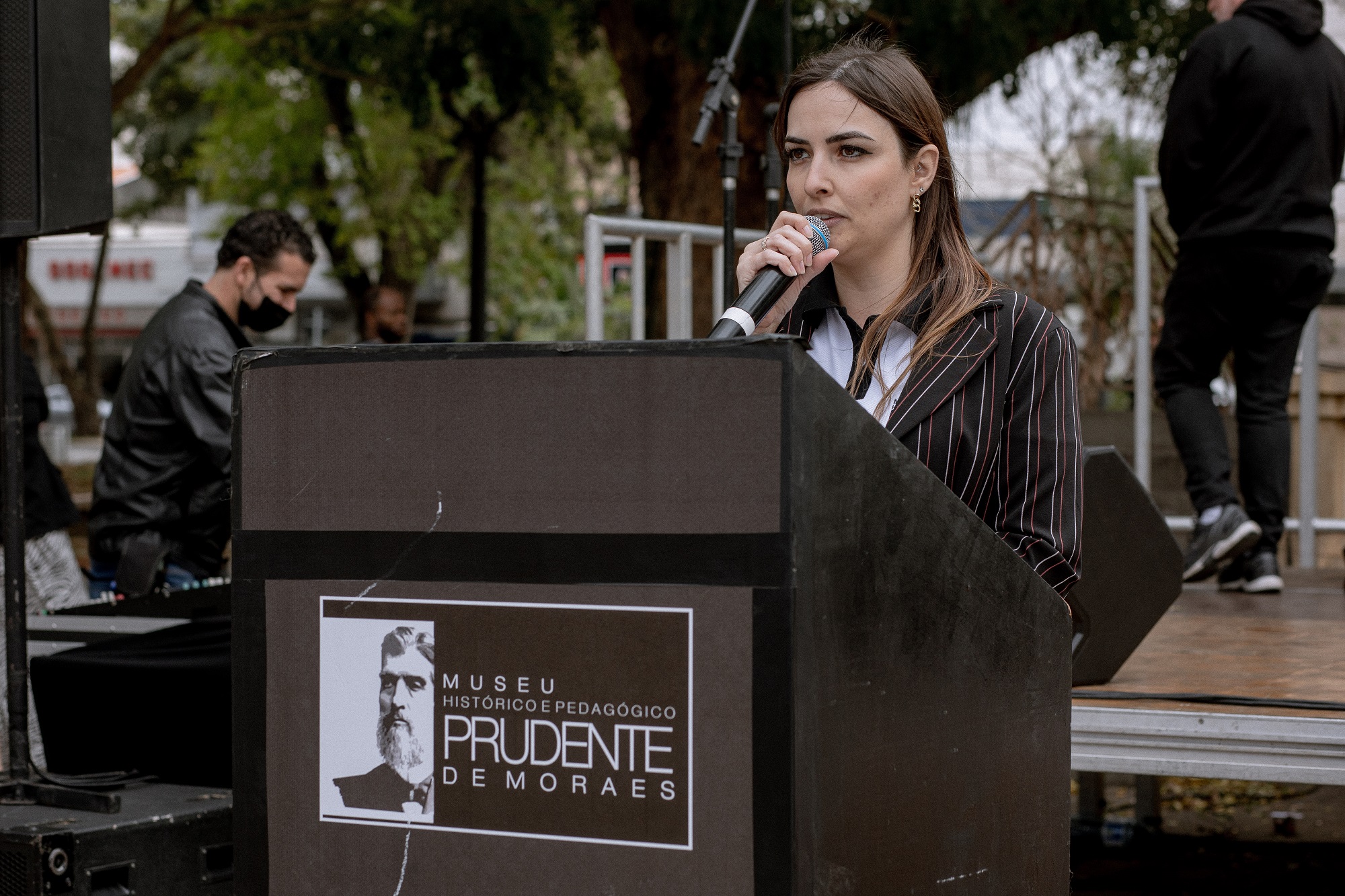 Diretora do Museu, Érica Frasson, durante abertura do evento celebrativo