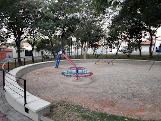 mureta revestida com placas pré-moldadas para que os acompanhantes possam ficar sentadas observando o movimento das crianças.