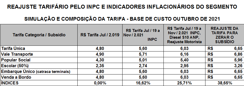 “Estamos há mais de dois anos com a tarifa a R$ 4,80, neste período todos os itens que a compõem sofreram reajustes. O diesel, por exemplo, somente neste ano, teve alta em torno de 65%”, lembra a responsável pela Semuttran, Jane Franco Oliveira.