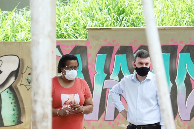 Celene de Castro, diretora da EM Prof. Carlos Sodero, junto do Secretário de Municipal de Educação, Bruno Roza.