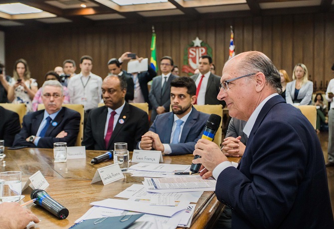O governador Geraldo Alckmin durante a cerimônia no Palácio dos Bandeirantes
