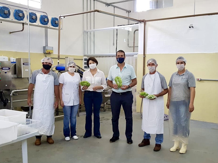 Na Coopihorti, o prefeito e a secretária foram recebidos pelo presidente da cooperativa, Vanderlei Sanches, que, junto a um grupo de agricultores, mostrou o funcionamento da linha de processamento mínimo de hortaliças e legumes.