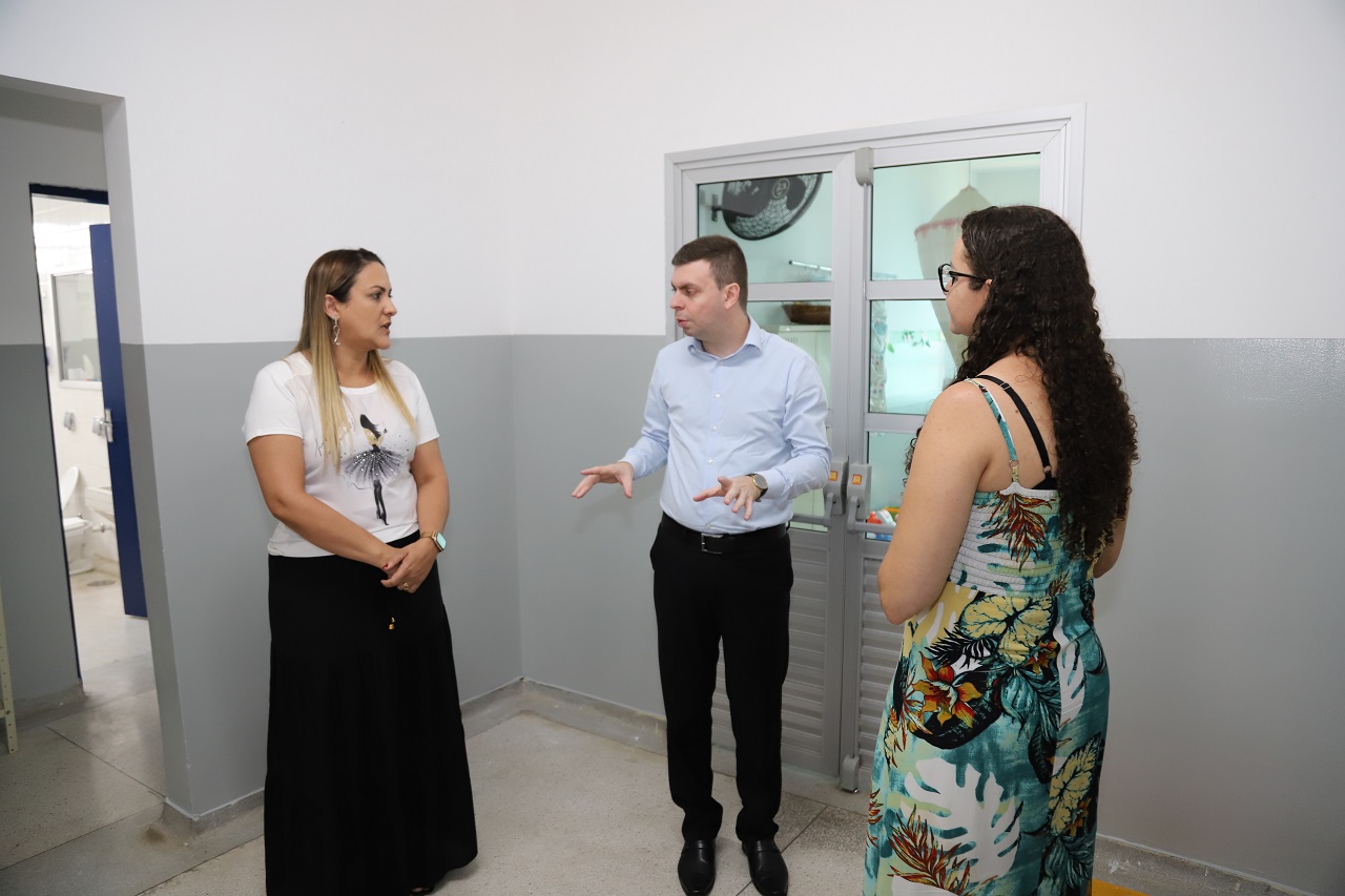 A visita foi acompanhada da diretora Joseane Jaqueline Mathias Santos e da supervisora Alessandra Capistrano, e o secretário pode vistoriar o andamento das obras e conversar com servidores. A escola, que atende 264 alunos da Educação Infantil, vem recebendo reforma para a remoção de trincas, rachaduras e infiltrações, conserto de muro de arrimo, além de pintura interna e externa.