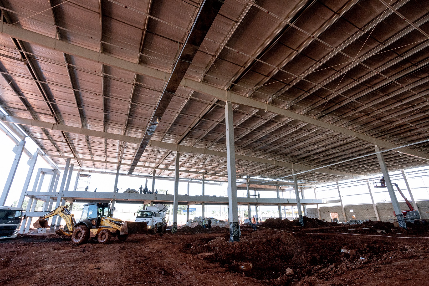 “O prédio está sendo construído com estruturas pré-fabricadas em concreto armado e protendido, com lajes alveolares nos mezaninos, estrutura de cobertura metálica e telhas zipadas que garantirão o sistema termoacústico na cobertura”, frisou Schilis.