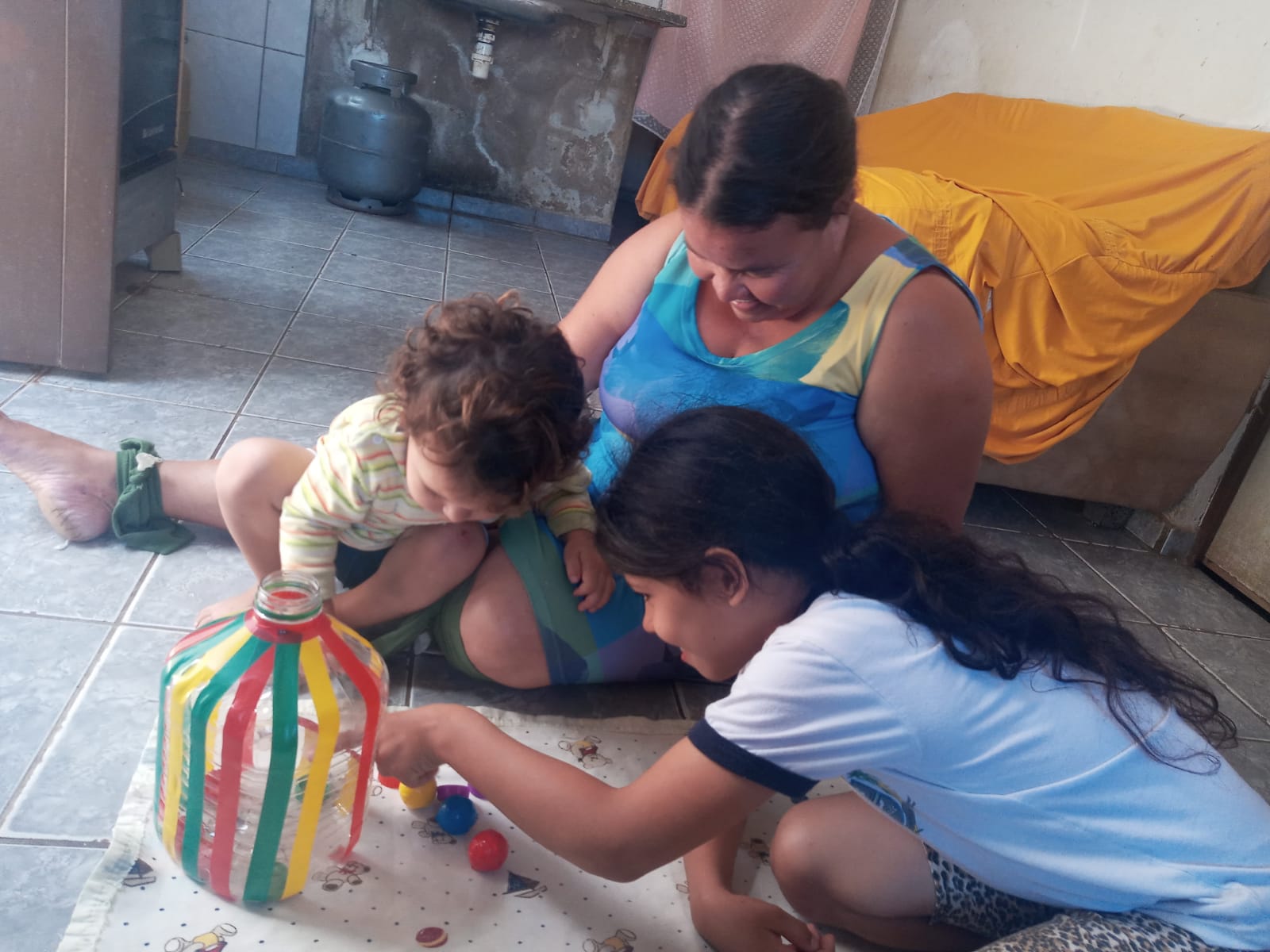 A proposta é incentivar o cuidado por meio de atividades realizadas com materiais não-estruturados, recicláveis e pedagógicos que trabalhem a linguagem, a cognição, a socioafetividade, a coordenação motora e o vínculo cuidador-criança.