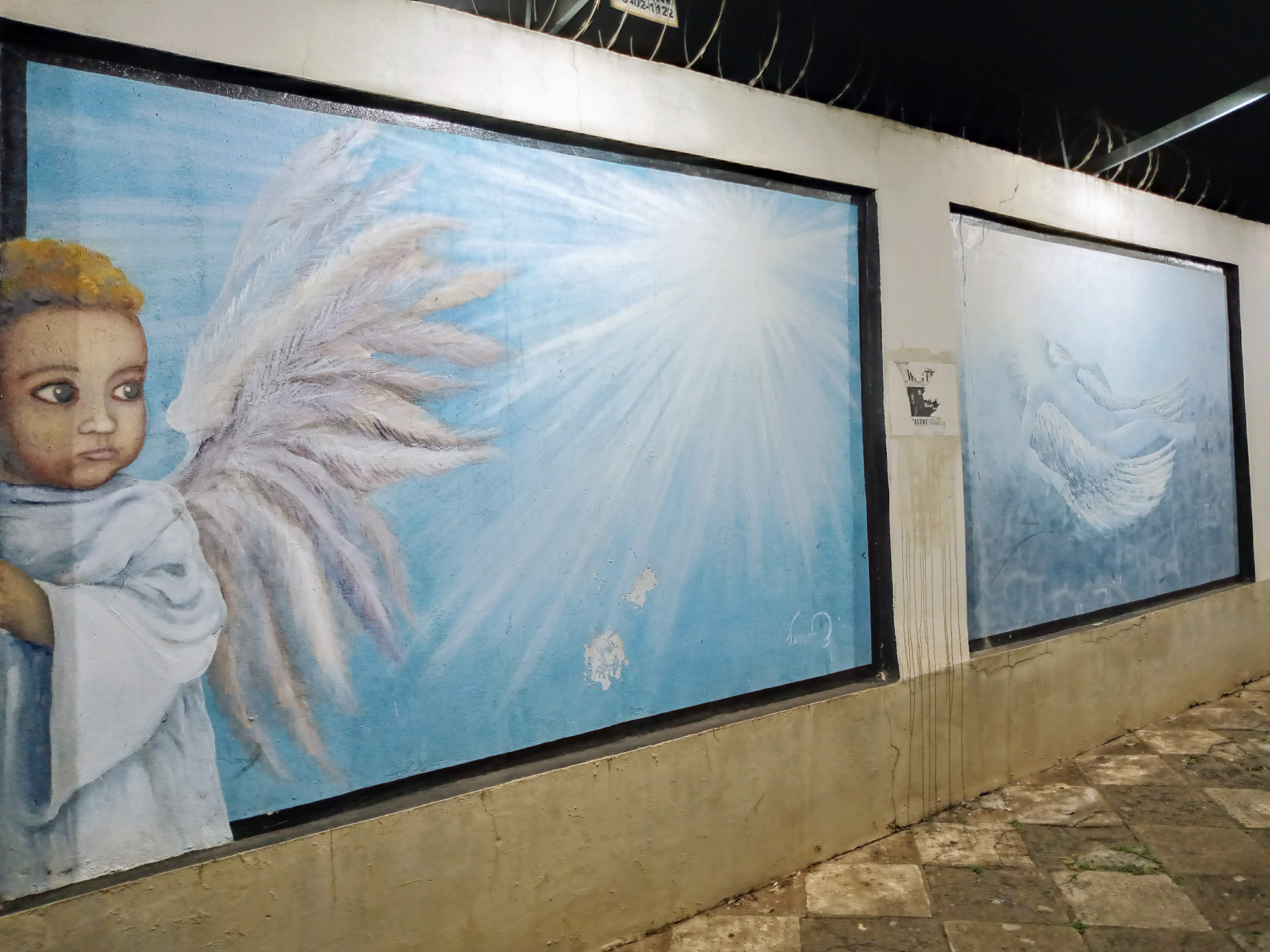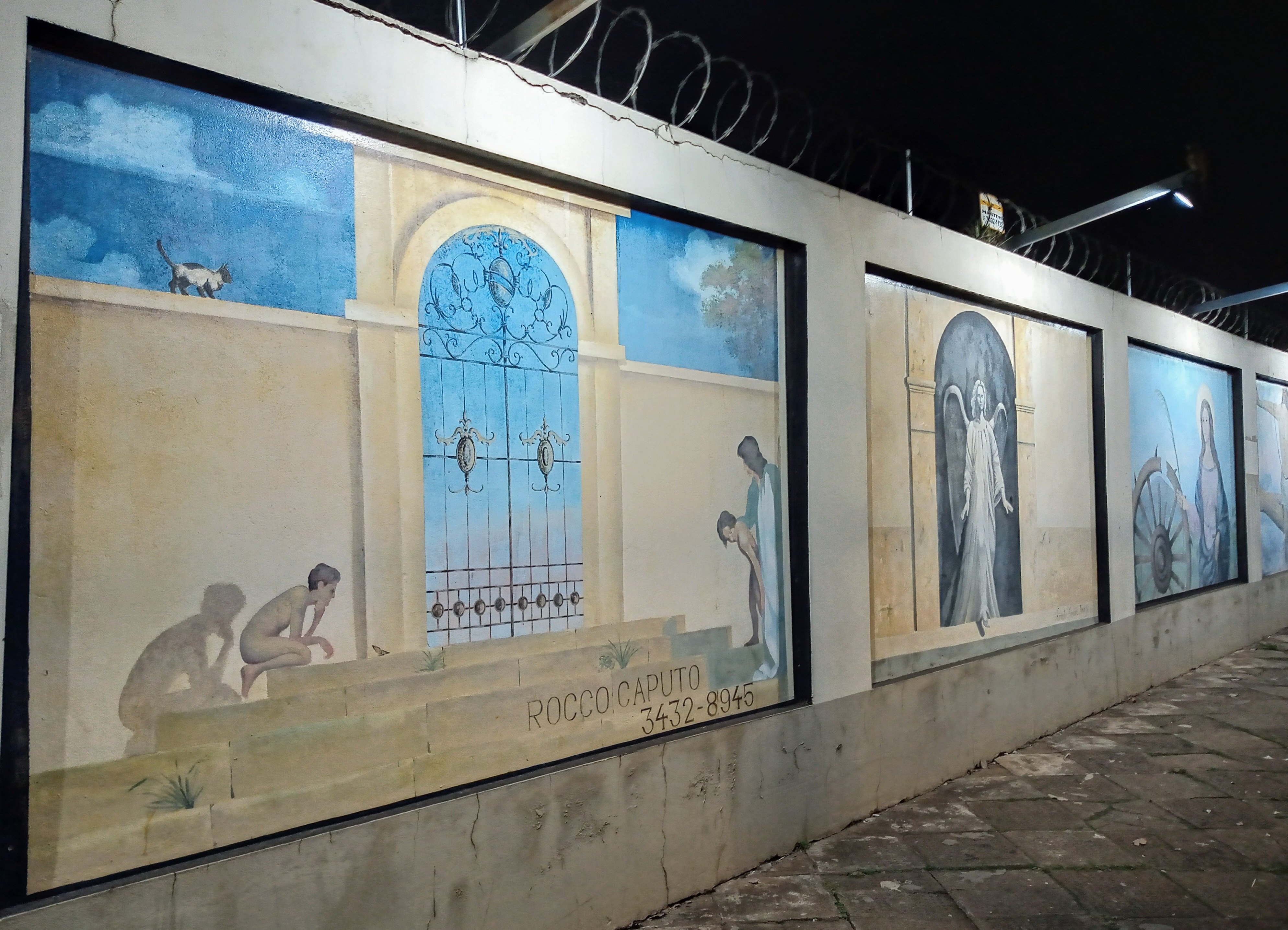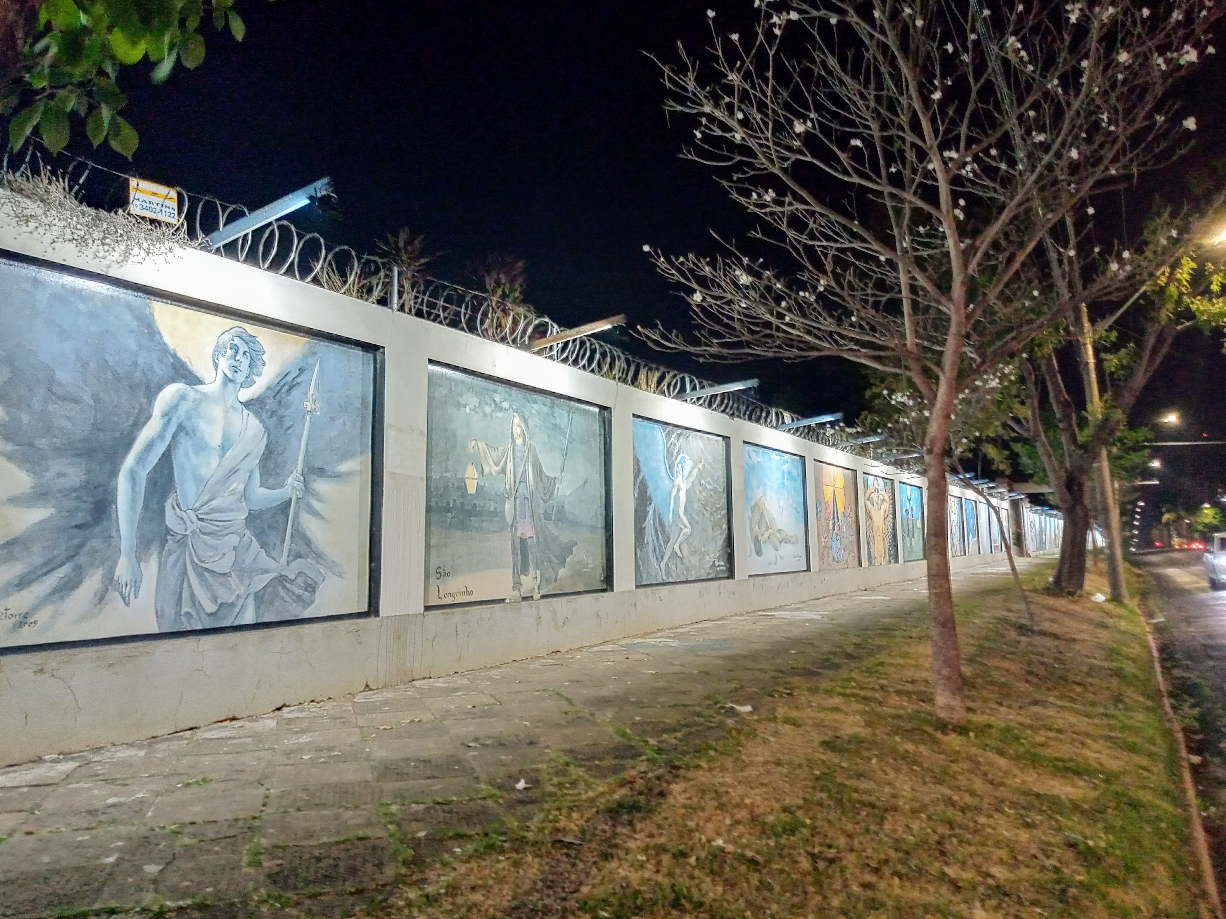 A Prefeitura concluiu a troca parcial da fiação e a substituição dos projetores da galeria de arte do muro do Cemitério da Saudade. Agora, quem passa pela avenida Independência, pode apreciar melhor as mais de 90 pinturas criadas por cerca de 50 artistas, que enfeitam o muro do cemitério e que fazem parte do projeto Colorindo a Saudade.