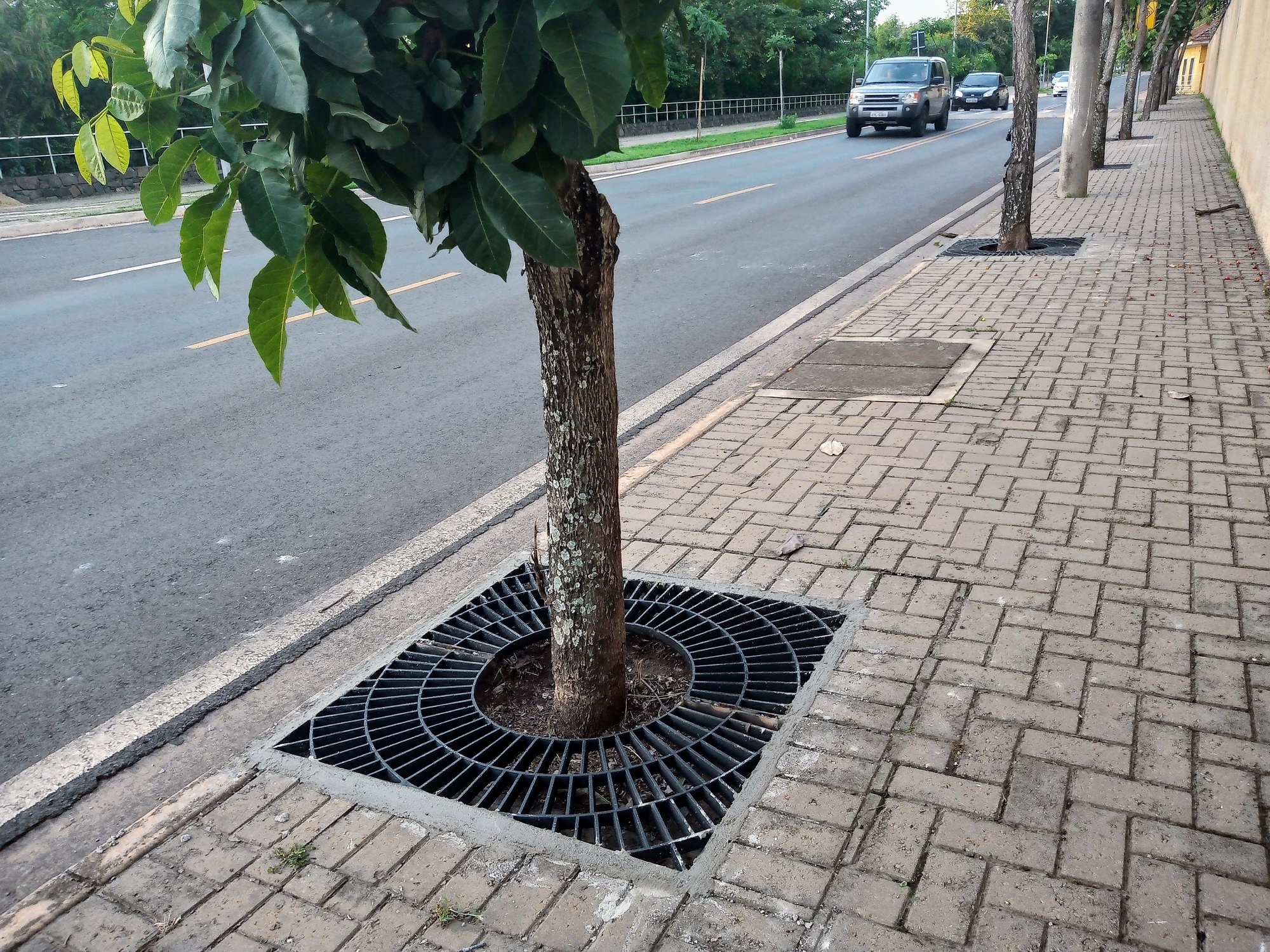 Grelhas arvoreiras também foram levadas por criminosos e novas foram reinstaladas e concretadas à calçada