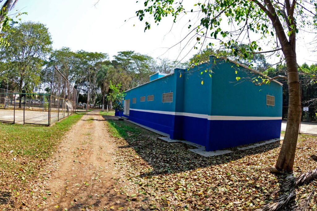 OUTRAS REFORMAS – A Área de Lazer do Trabalhador Antonio Geraldin recebeu várias melhorias no último ano. Em agosto de 2023, o espaço recebeu serviços de manutenção e de revitalização nas duas quadras poliesportivas, com troca das tabelas e reforço na demarcação das linhas com nova pintura e a recuperação dos bancos de madeira existentes.
