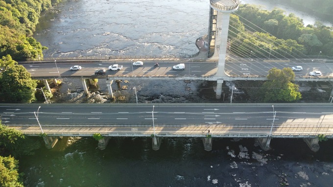 DRONES – Marcos Sartori disse que a utilização de drones foi essencial para realizar o trabalho de vistoria nas pontes em Piracicaba devido a sua flexibilidade e a qualidade de imagens registradas em 4k. A ideia inicial de realizar a inspeção das estruturas por meio de barcos foi abandonada devido à baixa vazão do rio Piracicaba nesta época de estiagem. O trabalho de inspeção dos viadutos foi realizado pelo método convencional de registro e observação.