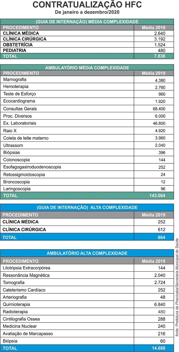 A Prefeitura de Piracicaba, por meio da Secretaria de Saúde, assinou hoje, 16/12, novo contrato de prestação de serviços com o Hospital dos Fornecedores de Cana (HFC) para 2020. Serão R$ 50.411.167,00 em procedimentos médicos de média e alta complexidades, internações, exames e ações estratégicas para garantia dos serviços.