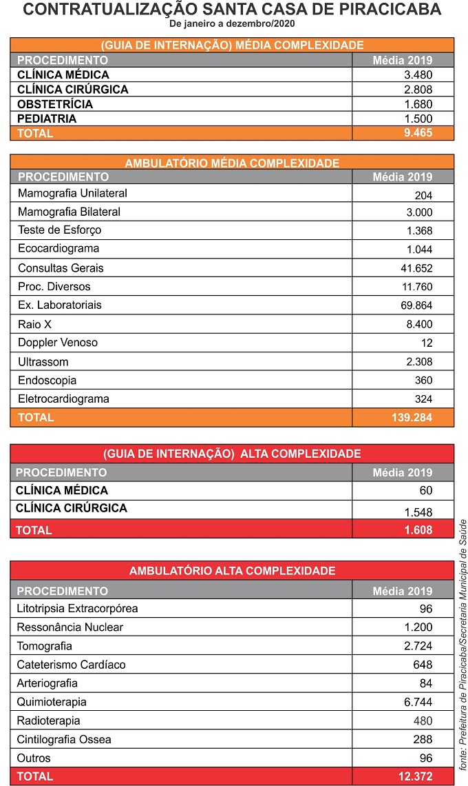 A Prefeitura de Piracicaba, por meio da Secretaria de Saúde, assinou ontem (16) novo contrato de prestação de serviços com a Santa Casa para 2020. Serão R$ 66.392.800,00 disponibilizados para procedimentos médicos de média e alta complexidades, internações hospitalares, exames e ações estratégicas para garantia dos serviços.