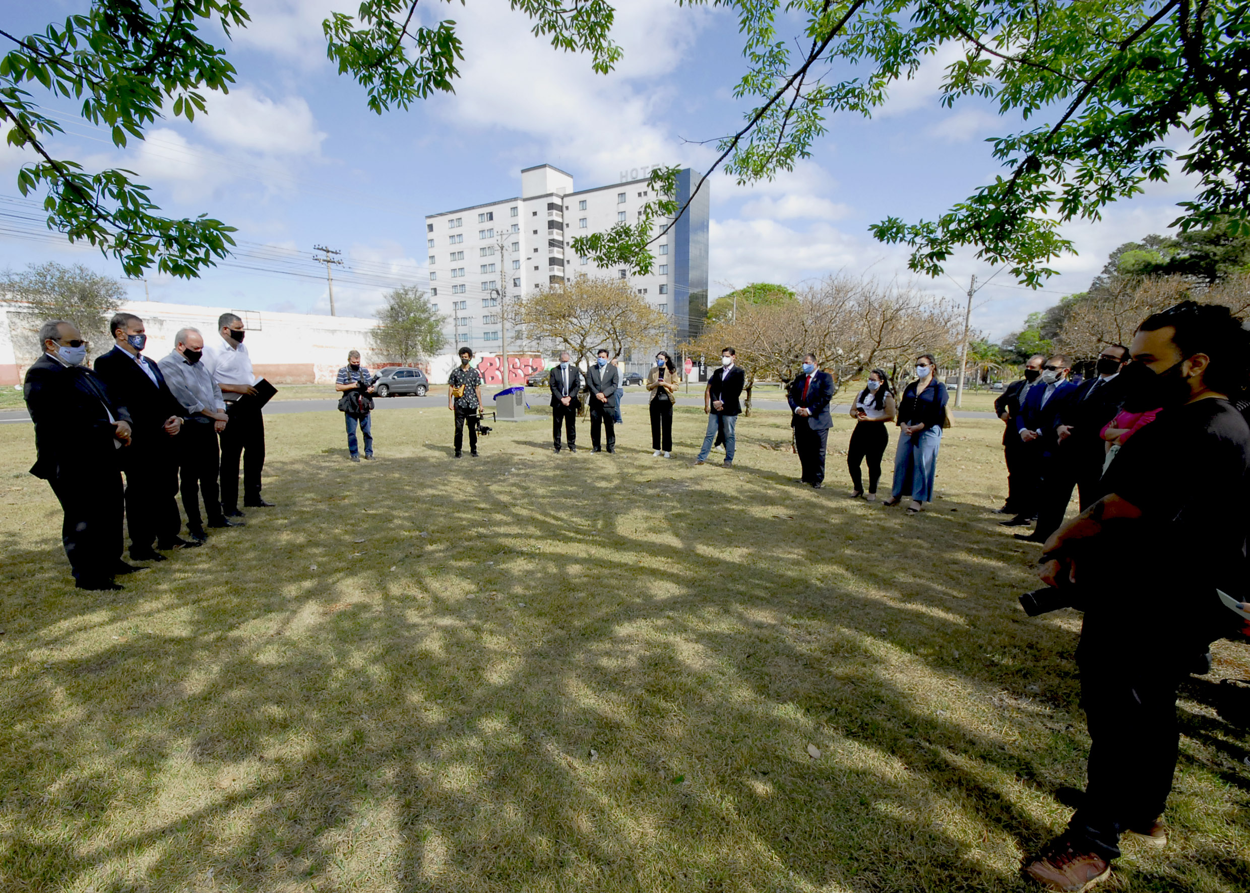 A Prefeitura fez a denominação da praça Rotatória OAB, localizada na avenida Cássio Paschoal Padovani, entre a avenida Guerino Lubiani e rua Frei Honório Franco, no Dois Córregos, em cerimônia que aconteceu ontem, 30/08, às 9h30. A cerimônia contou com a presença do prefeito Luciano Almeida, do presidente da OAB Piracicaba, Jefferson Luiz Lopes Goularte, do presidente da Câmara de Vereadores, Gilmar Rotta, e do autor do projeto de lei que denominou a praça, o vereador Paulo Roberto de Campos.