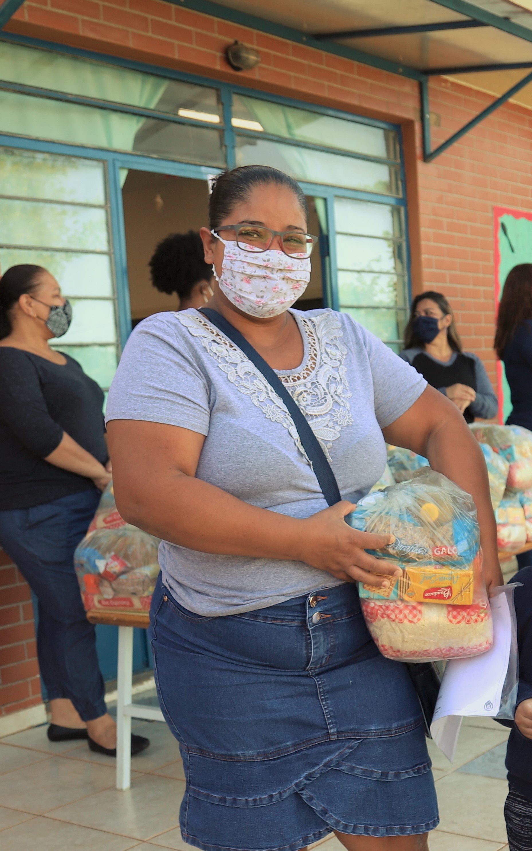 Andréa Cristina Martinatti, mãe de aluno da Escola Municipal Bruna Ferreira da Silva, também foi até a escola para pegar seu kit. "Eu fico muito feliz de estar recebendo esse Kit que é de muita ajuda", disse.
