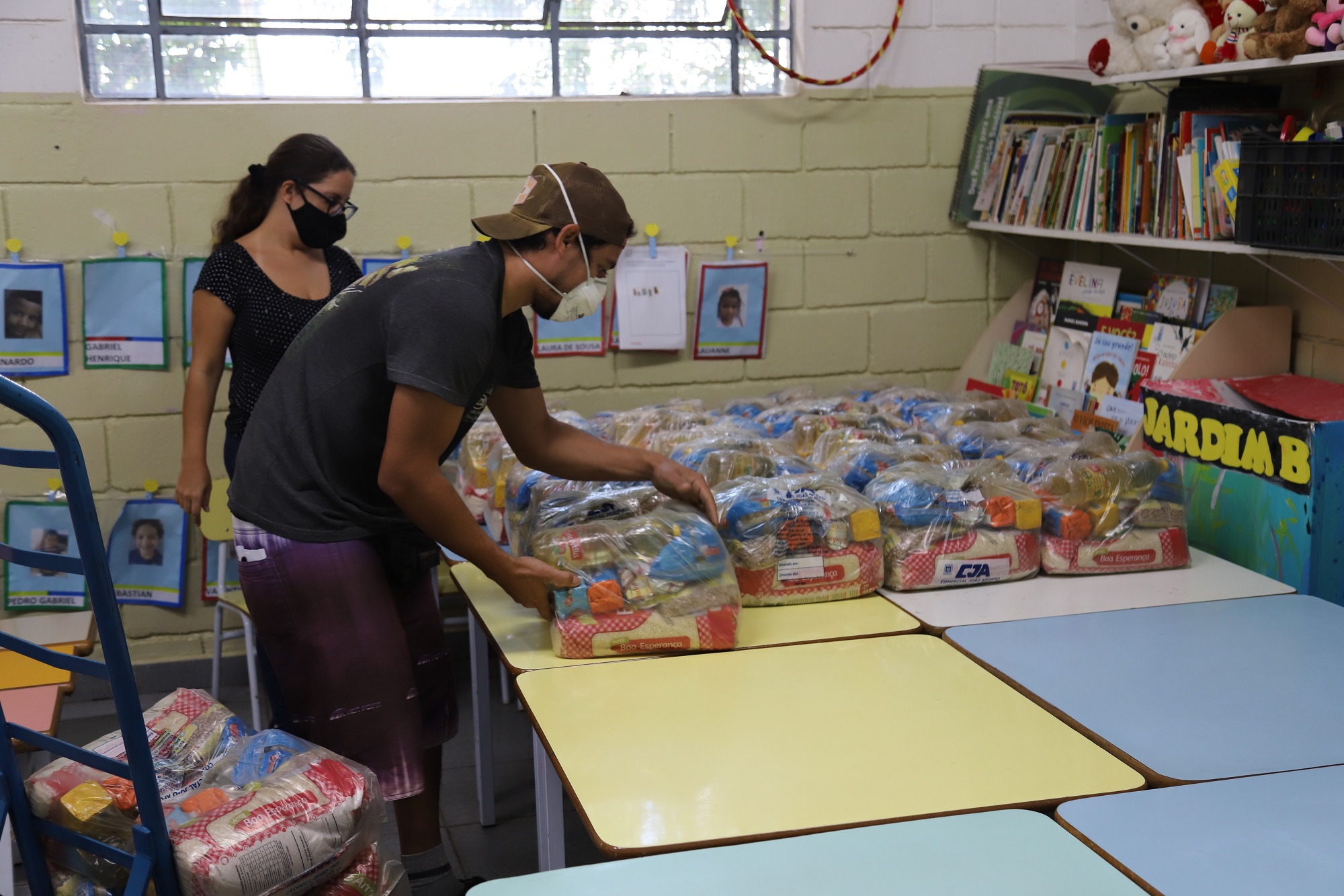 As entregas estão sendo realizadas nas unidades escolares, organizadas pela equipe escolar responsável, que também faz a comunicação com as famílias.