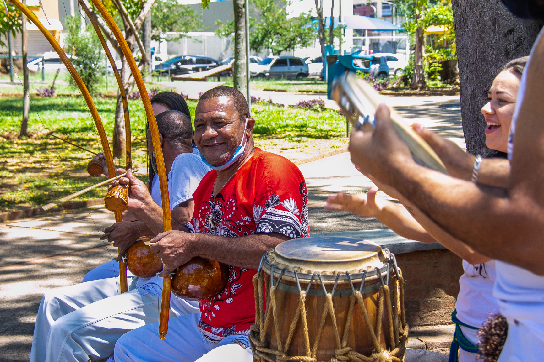 Academia de Capoeira Quilombo do Corumbatai, dirigida pelo Mestre Nambu, em foto no Parque Histórico