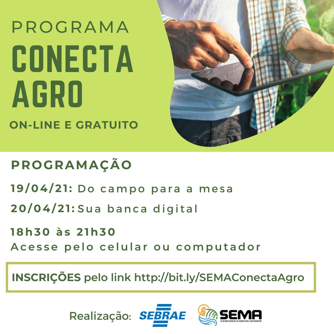 Estão abertas as inscrições para o Conecta Agro, um programa oferecido pelo Sebrae, em parceria com a Prefeitura, por meio da Sema (Secretaria Municipal de Agricultura e Abastecimento), e direcionado aos produtores rurais de Piracicaba.