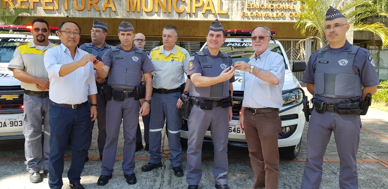 Os veículos doados pela Prefeitura são duas caminhonetes Chevrolet S10 cabine dupla equipadas, no valor total de R$ 269.580,00. Os recursos são provenientes das multas municipais. “O convênio prevê a cooperação com a PM, que nos auxilia na fiscalização. No ano passado doamos uma Fiat Toro. Esses veículos são usados em ocorrências de acidentes e fiscalização rotineira de trânsito, como veículos suspeitos ou que cometem irregularidades, principlamente em horário noturno”, explica Akira.