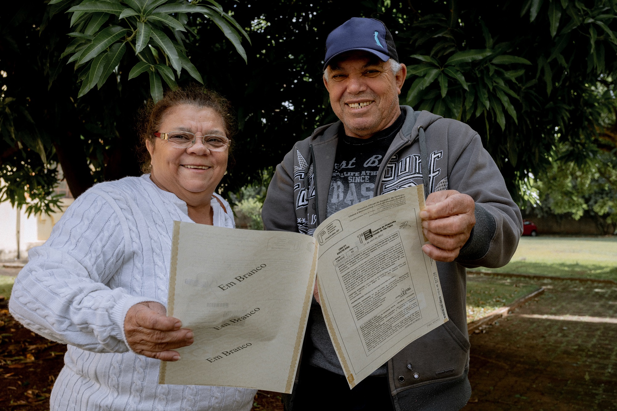 José Quintino e a esposa Zilda exibem a matrícula do imóvel