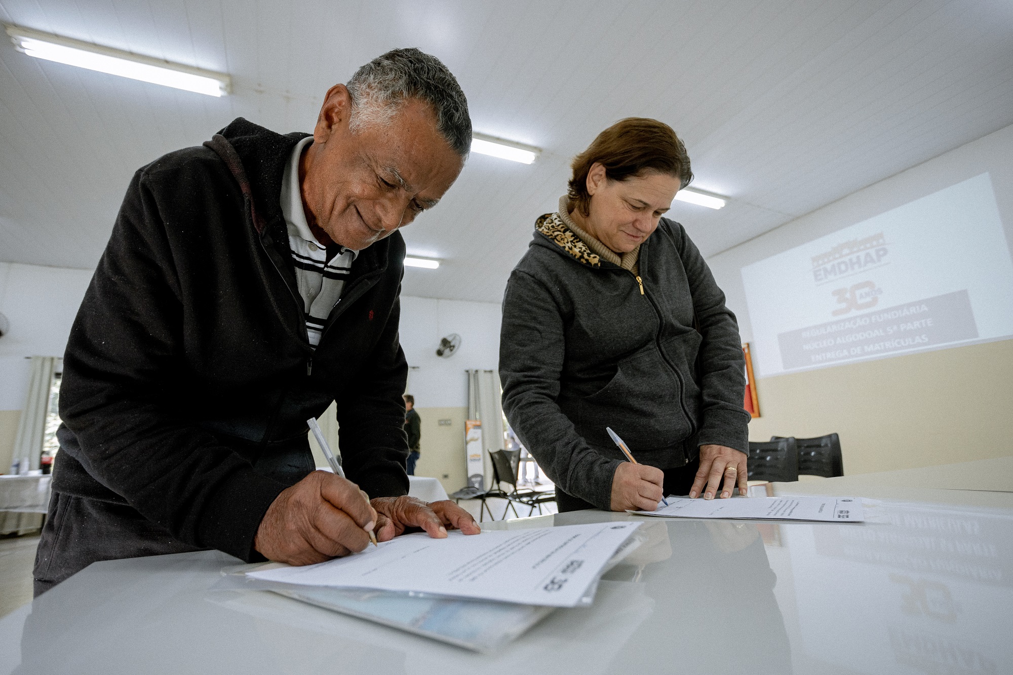 José Quintino da Silva era visivelmente um dos mais emocionados durante o evento. “Tenho agora o papel que me garante a posse definitiva do terreno! Só tenho que agradecer ao prefeito Luciano Almeida e à Emdhap”, comentou.