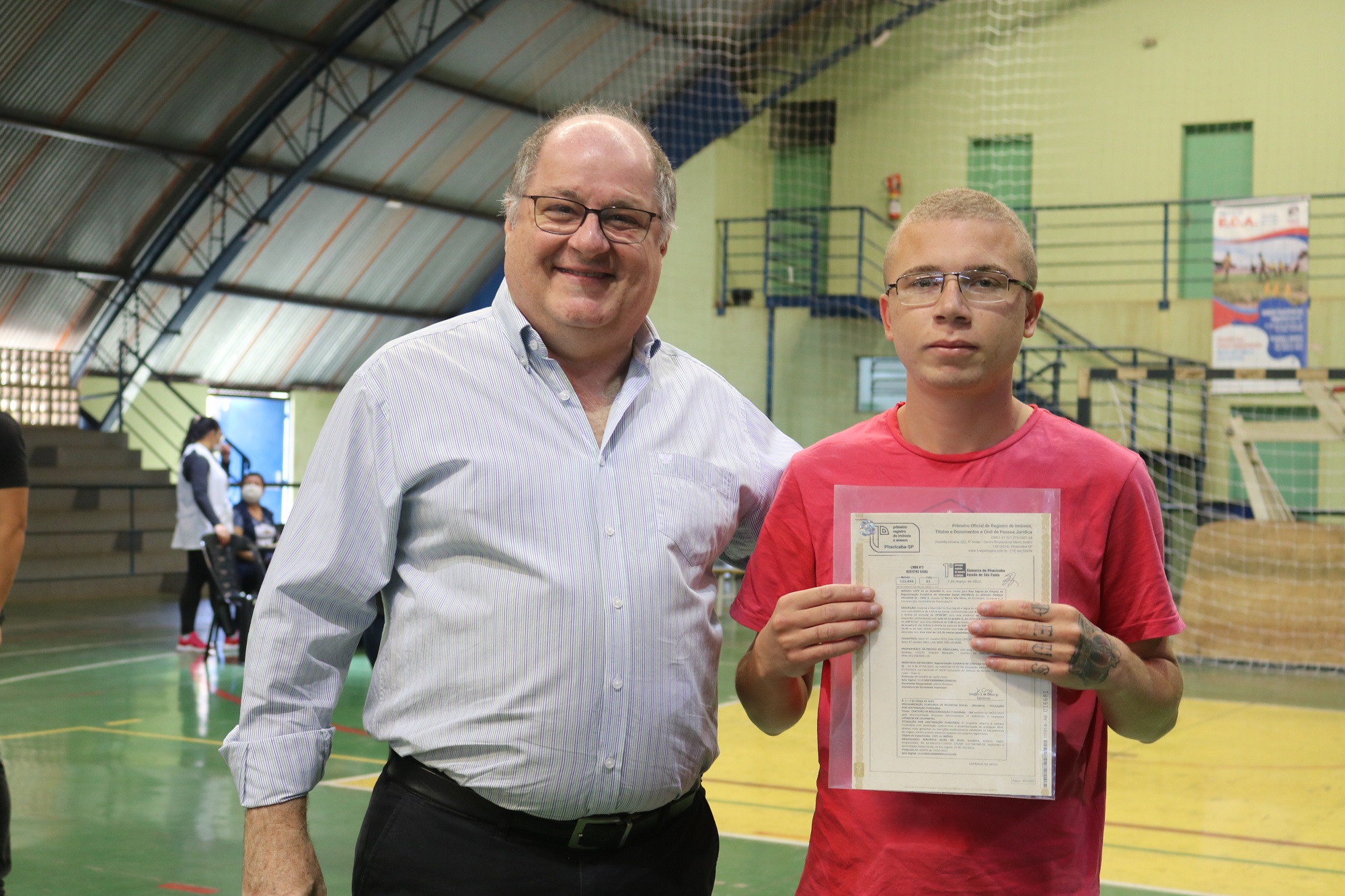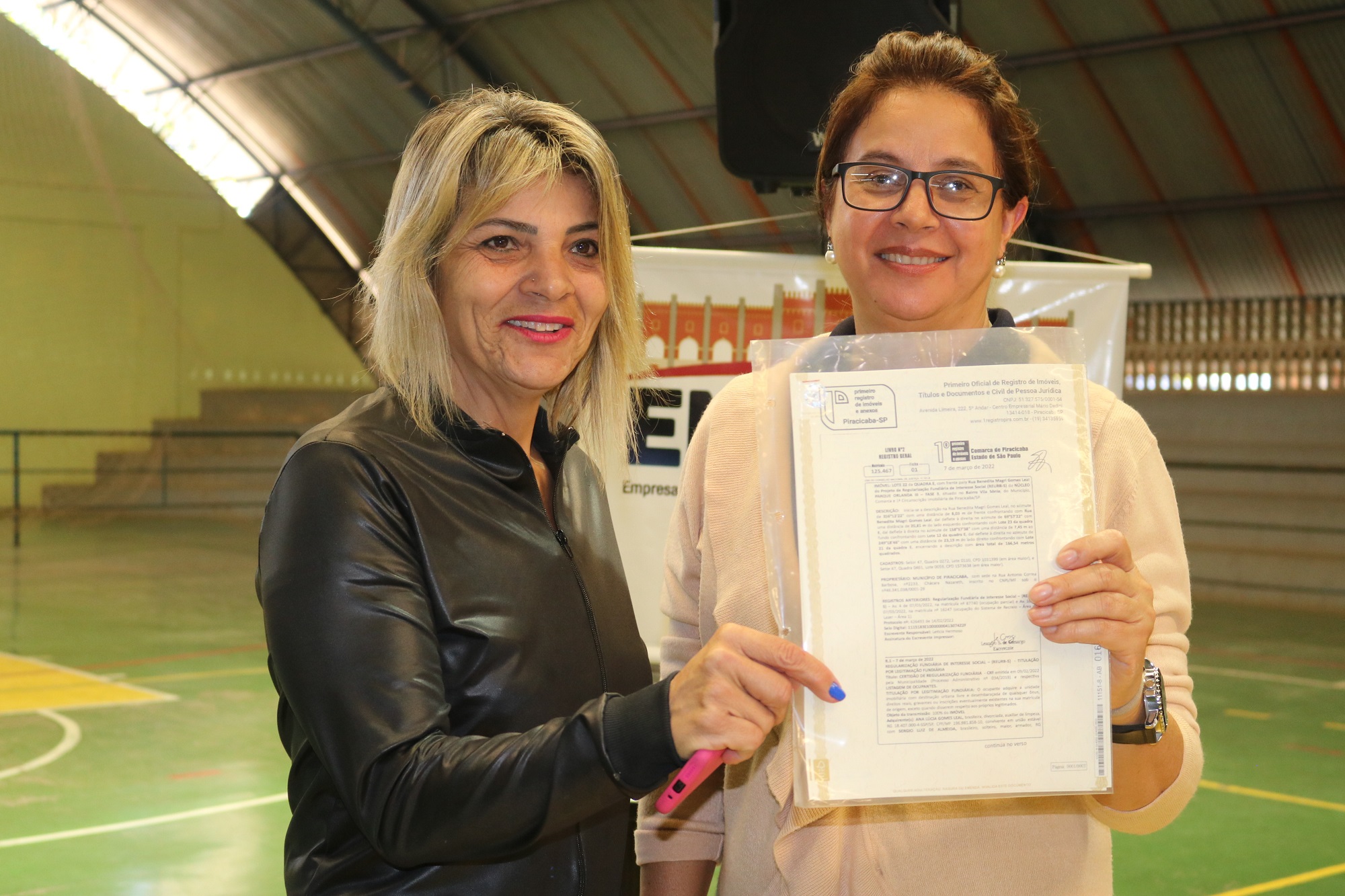 A Prefeitura de Piracicaba, por meio da Emdhap (Empresa Municipal de Desenvolvimento Habitacional de Piracicaba), entregou na manhã de sábado, 13/08, matrículas de terrenos para 90 famílias do bairro Parque Orlanda, fruto do término do processo de regularização fundiária de Interesse Social (REURB-S) da área. A cerimônia de entrega, que faz parte da programação festiva em celebração aos 255 anos de Piracicaba, aconteceu no Ginásio Poliesportivo Roberto Filetti, com a presença do prefeito Luciano Almeida, do presidente da Emdhap, Sérgio Maluf Chaim, dos secretários de Governo e de Transportes Internos, Carlos Beltrame e Paulo Roberto Borges, respectivamente, além dos vereadores Anilton Rissato e Gustavo Pompeo.