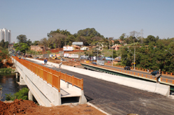 Na Ponte do Lar dos Velhinhos foram reformulados os pilares de sustentação, recuperados locais onde havia problemas com erosão próxima à margem do rio, e agora será feita recuperação da malha viária.