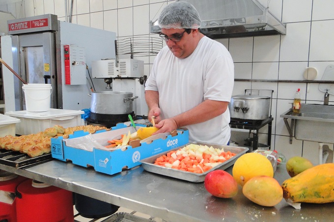Rogério Parra, gerente da Fábrica da Rivana Padaria & Delicatesen, prepara alimentos