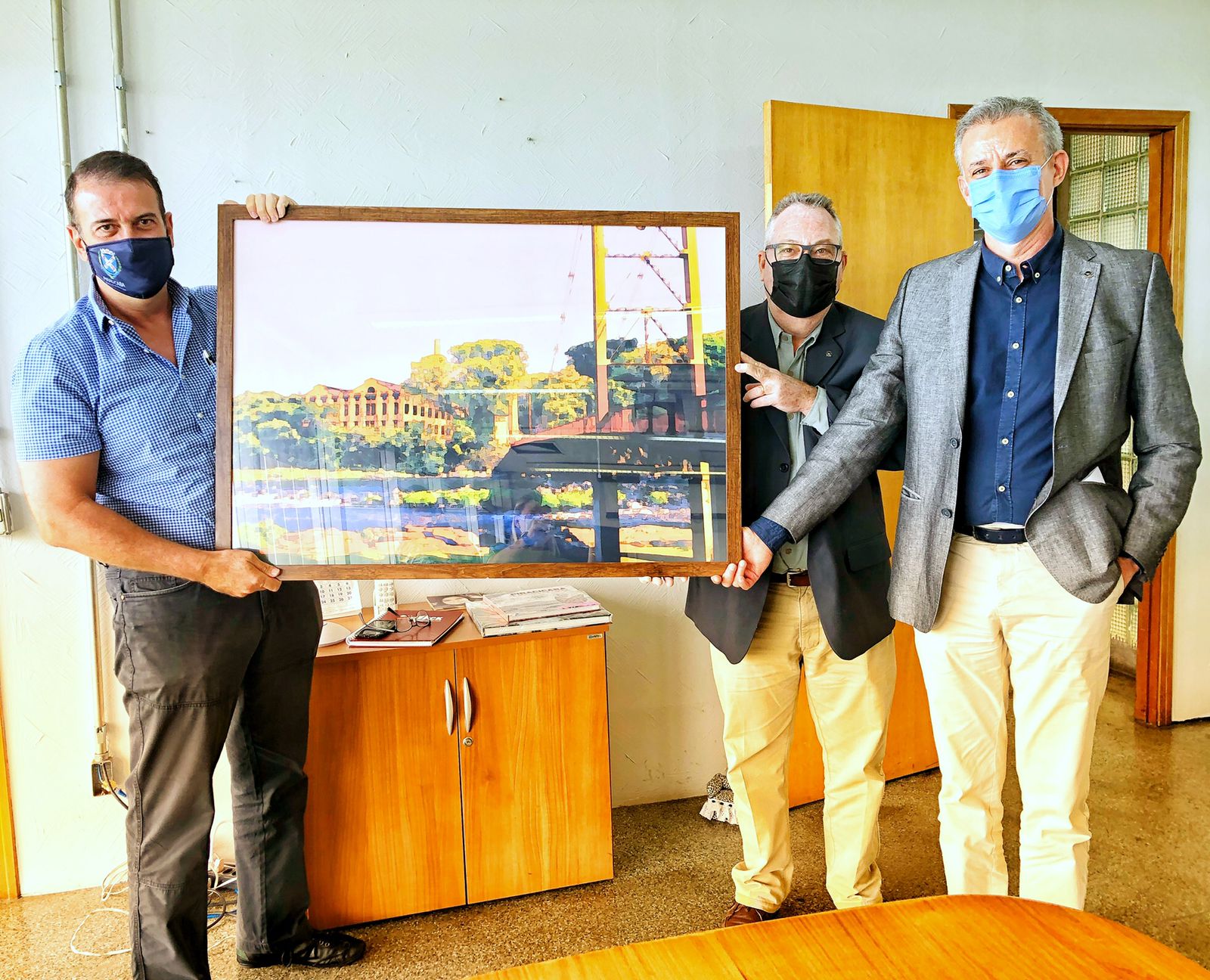 Na oportunidade, o prefeito presenteou Meirelles com um quadro da artista plástica Mel Pozzi, intitulado Cores de Piracicaba, que estava em exposição da Galeria Gabinete do Prefeito, espaço aberto para que os artistas de Piracicaba mostrem seus trabalhos.