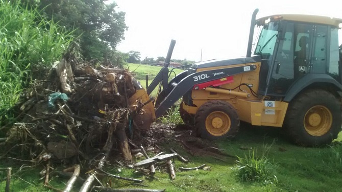 A Prefeitura de Piracicaba executou, na manhã desta quarta-feira (24), a desobstrução de uma galeria de águas pluviais localizada na rotatória que liga as avenidas Adiel Paes Zanith, Diácono Jair de Oliveira e Manoel Lopes Alarcon, acesso ao condomínio Jequitibás, no bairro Santa Rosa. Houve a remoção de uma árvore de porte grande que estava atrapalhando a passagem de água na tubulação coletora, um poste de madeira e muitos galhos de árvores.