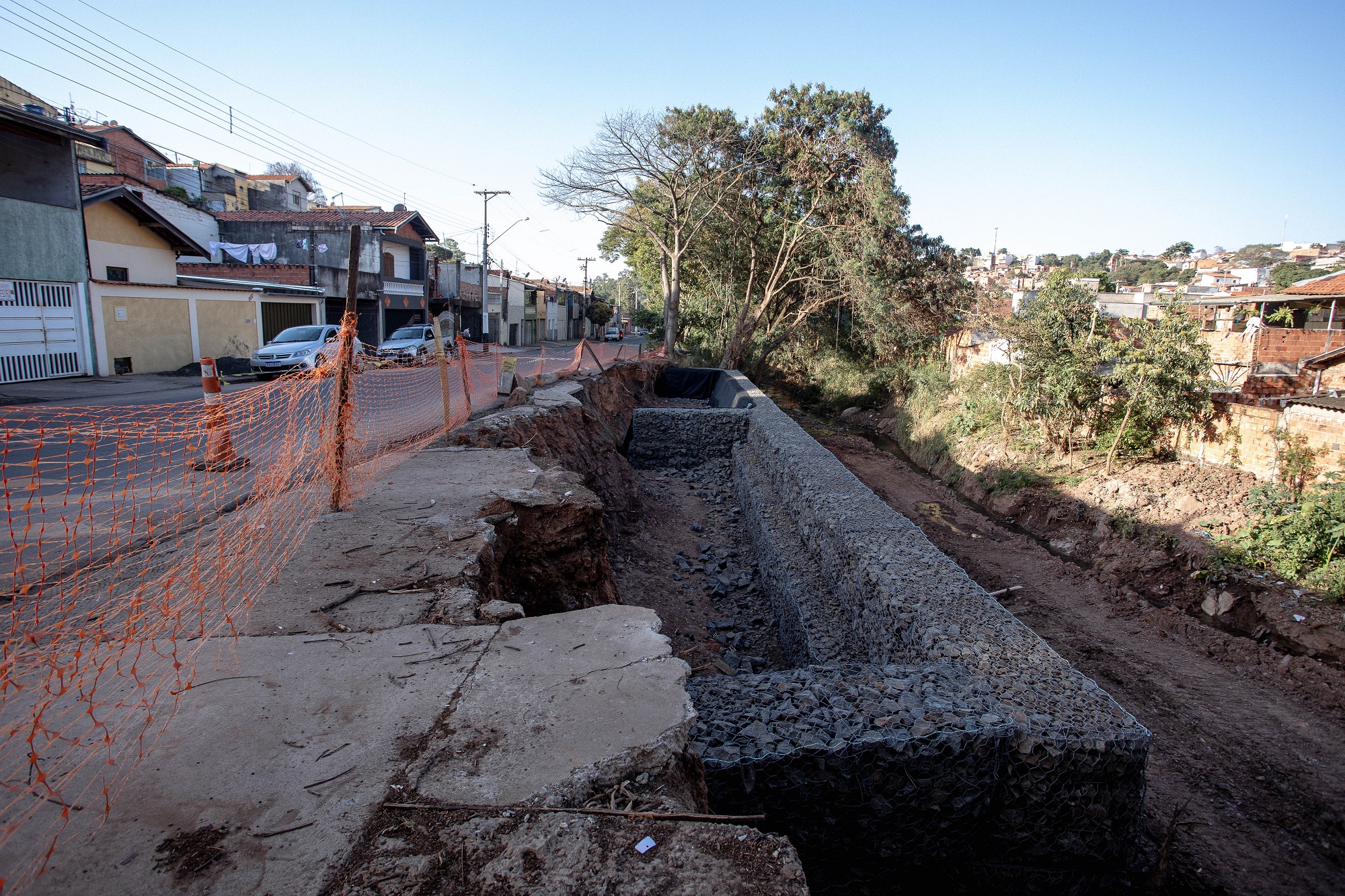 A obra foi feita de forma emergencial para evitar que a erosão no local aumentasse e prejudicasse a via, necessitando de interdição total. O muro de gabião foi construído em aproximadamente 35 metros de extensão da margem do ribeirão na avenida e cinco metros de altura.