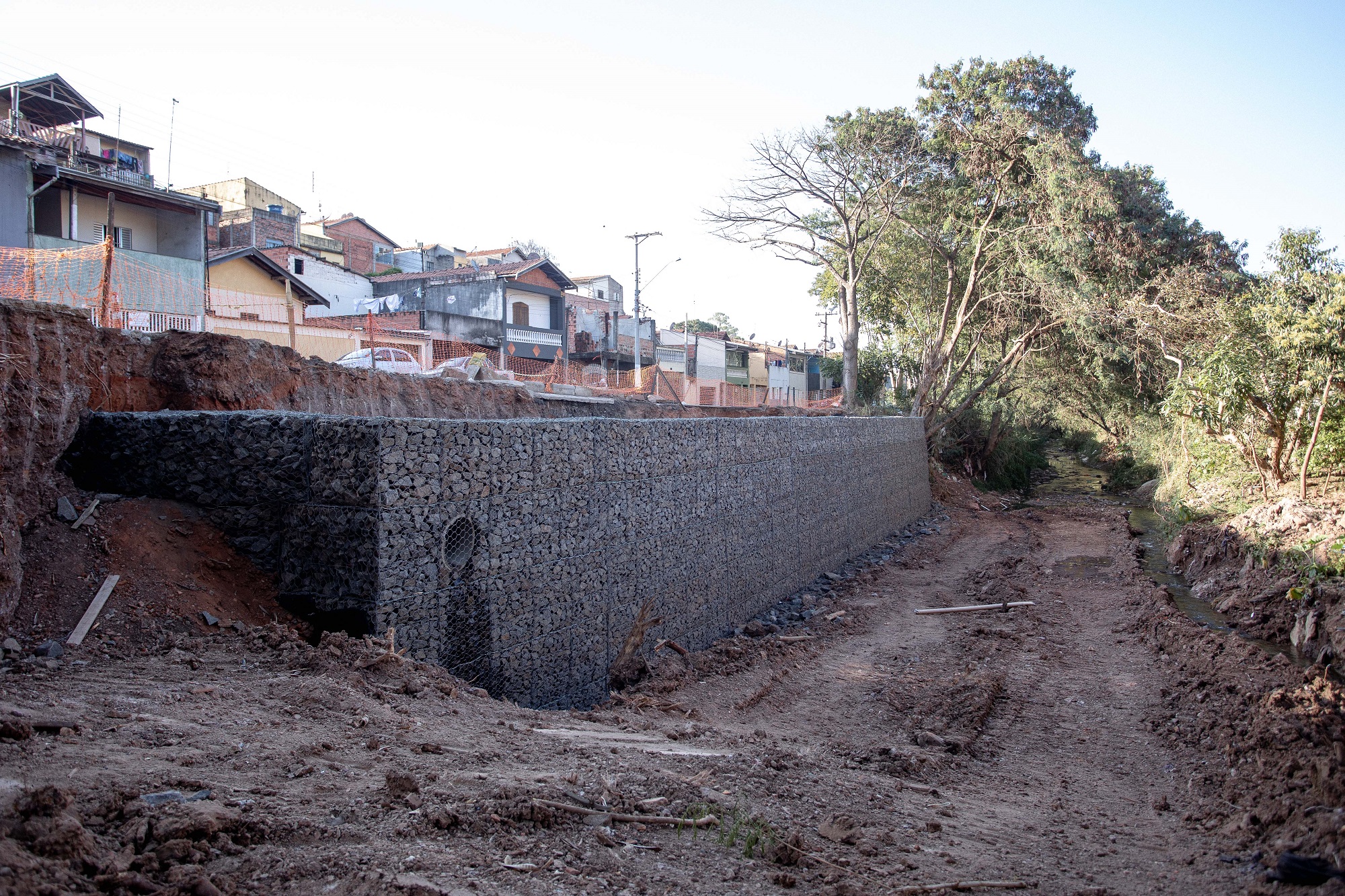 Prefeitura finalizou construção do muro de gabião no ribeirão do Enxofre | Foto: Isabela Borghese/CCS
