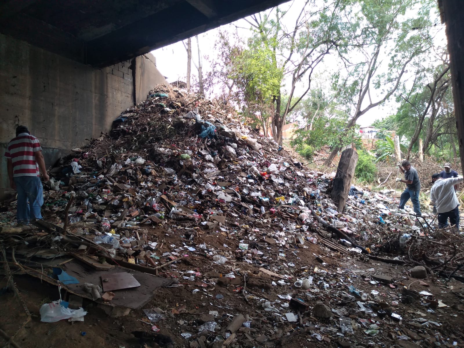 Sedema retirou entulho e rejeitos de recicláveis abaixo da ponte do Caixão | Foto: Sedema/Divulgação