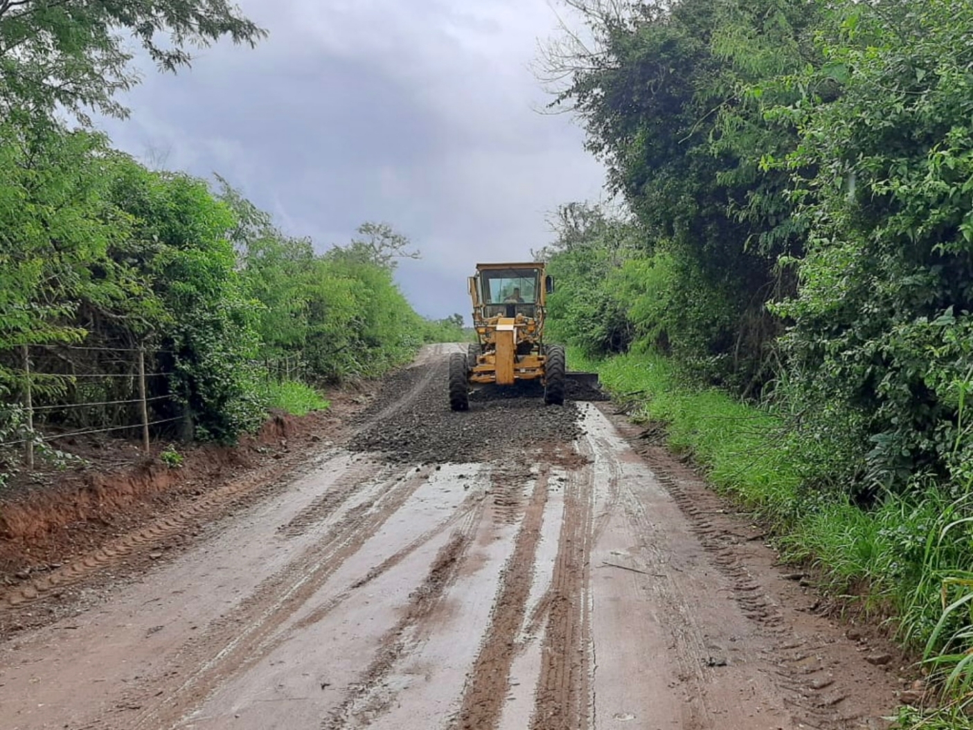A equipe iniciou os trabalhos no dia 3/01, com máquina motoniveladora e aplicação de lajão britado. Não foi necessário fazer desvio, pois a estrada não ficou interditada para as obras.