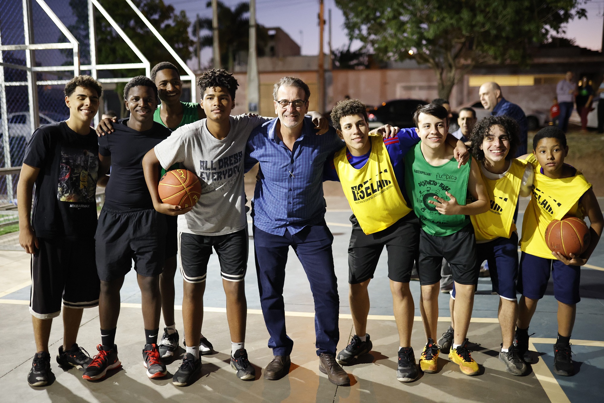 APROVAÇÃO – Após o descerramento da placa do Areninha Vem Viver, crianças, jovens e adultos já começaram a utilizar o espaço para jogar basquete e futebol. “Estou muito feliz com essa inauguração, porque basquete é o esporte que mais gosto e sei que agora tenho essa opção de lugar para treinar sempre que possível”, falou Wendel da Silva Jacinto, 17. Quem também aprovou a iniciativa foi Caio Maluza, 15. “Estávamos precisando de um espaço assim, com quadra e campo, para podermos praticar as atividades”, disse.