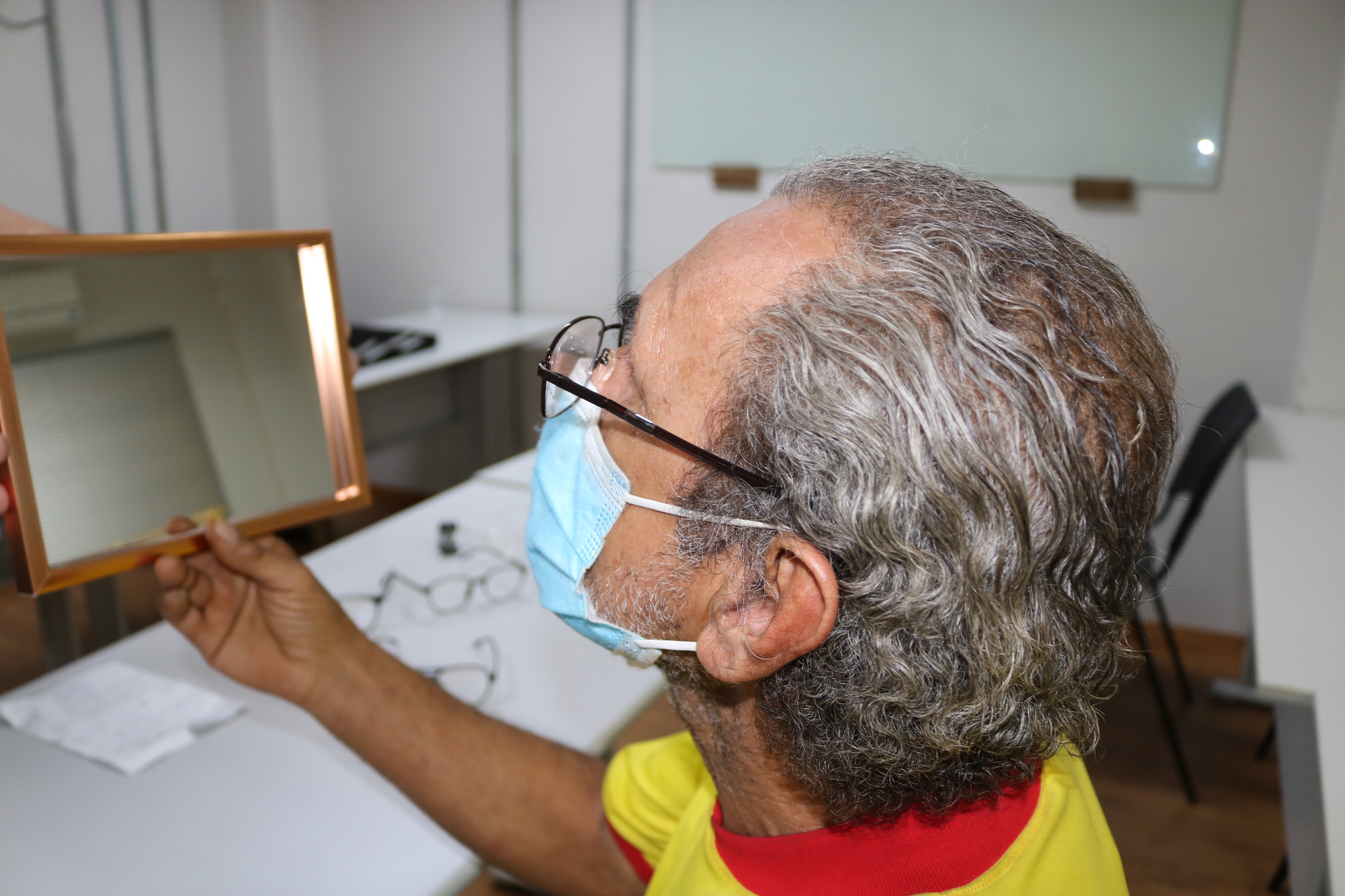 O soldador J., desempregado, de 63 anos, foi um dos atendidos neste primeiro dia. Ele contou que já não enxerga muito bem há uns anos, por conta do seu trabalho, realizado nem sempre com a proteção necessária. A decisão de procurar um médico foi pela insistência da filha, que marcou todos os procedimentos. Ele acredita que com o seu primeiro par de óculos conseguirá voltar ao mercado de trabalho.