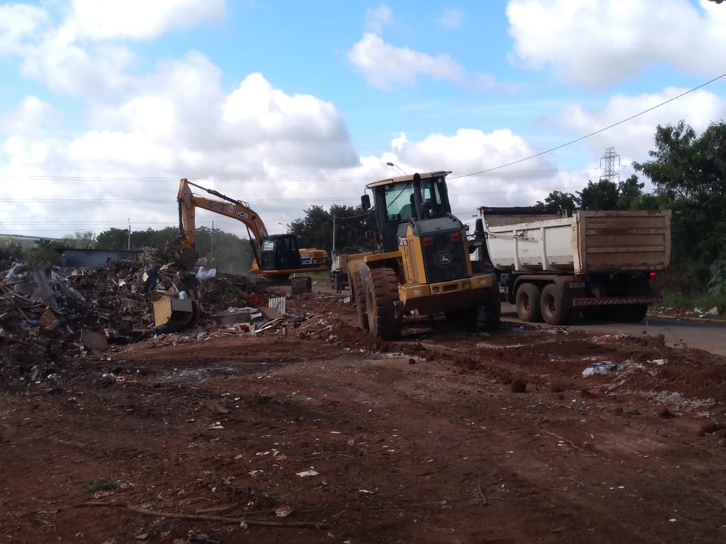 A limpeza do Ecoponto e da área está sendo realizada com caminhões e equipamentos como uma pá carregadeira, uma máquina PC escavadeira e uma escavadeira hidráulica. "Hoje, estamos trabalhando com 11 caminhões que, depois de carregados, rumam para o Ecoparque", relata o responsável pelo setor.