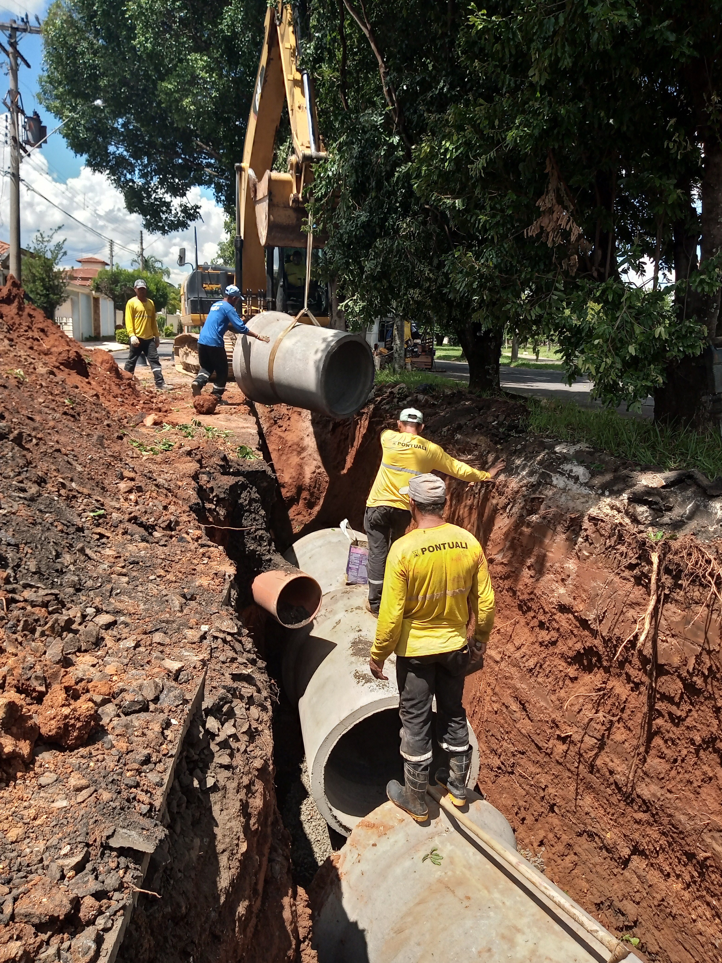 Neste trecho, começaram a ser instalados 236 metros de tubulação para condução das águas pluviais e serão construídos 10 novos poços de visita, além de 8 unidades de bocas de lobo.