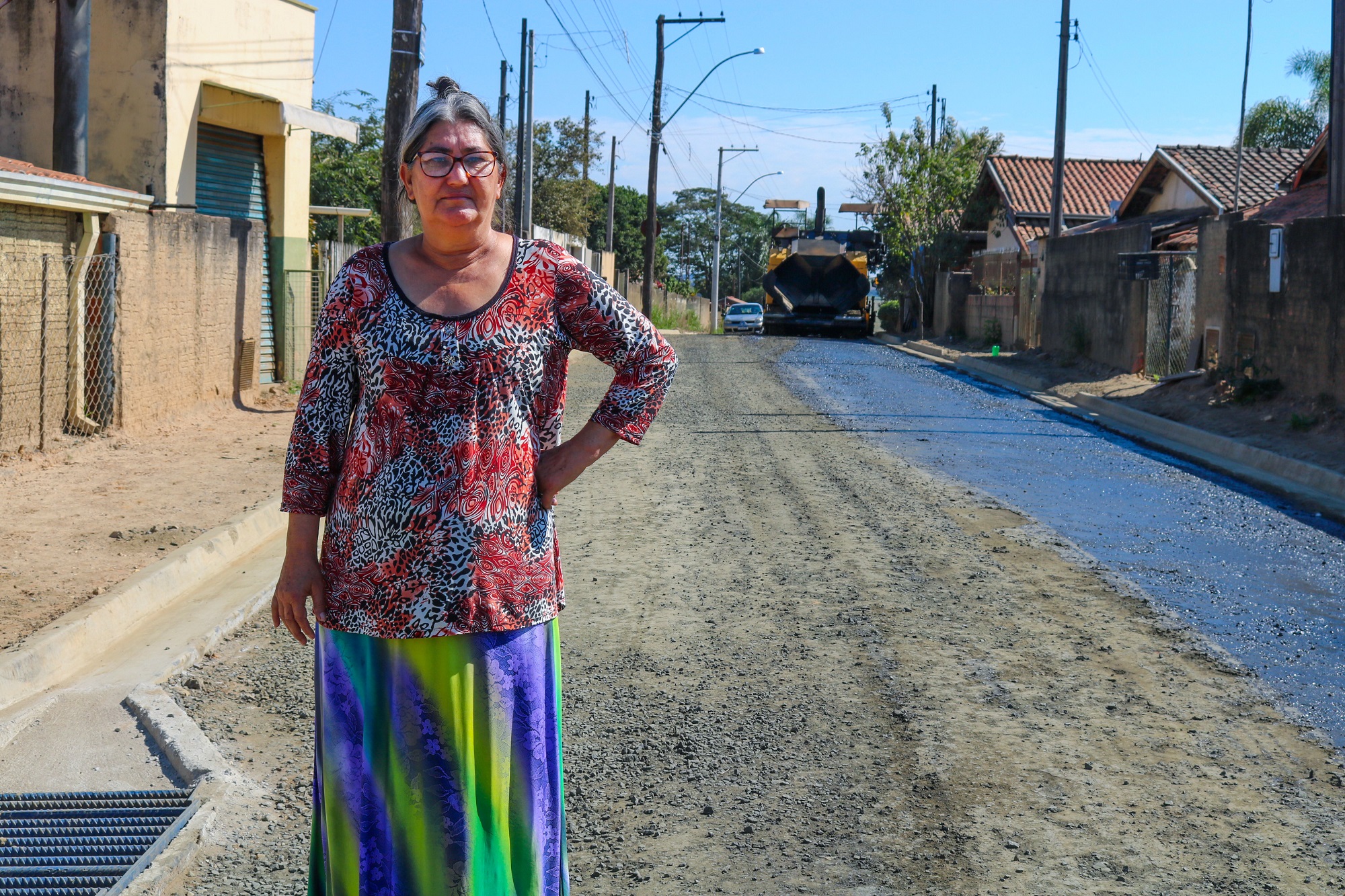 OBRA AGUARDADA – A costureira Izabel Emilio da Silva Carlos mora no bairro há 37 anos e disse que a pavimentação da estrada era esperada há tempos. “São muitos anos esperando por essa obra. Sofremos bastante por conta da poeira e da lama em dias de chuva. Isso sem contar a dificuldade dos carros e, principalmente, do ônibus do bairro passar, que já encalhou várias vezes, deixando muitas pessoas atrasadas para o trabalho. Então essa obra vai melhorar muito a nossa vida”, destacou. A costureira Izabel Emilio da Silva Carlos mora no bairro há 37 anos e disse que a pavimentação da estrada era esperada há tempos