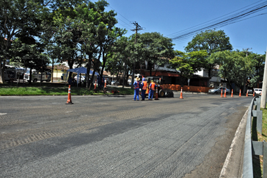 Na avenida Dr. Paulo de Moraes, são realizados obras de eliminação de borrachudos (deformaçõesno asfalto), em pontos próximos à Prefeitura.