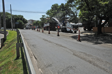 Na avenida Dr. Paulo de Moraes, são realizados obras de eliminação de borrachudos (deformaçõesno asfalto), em pontos próximos à Prefeitura.