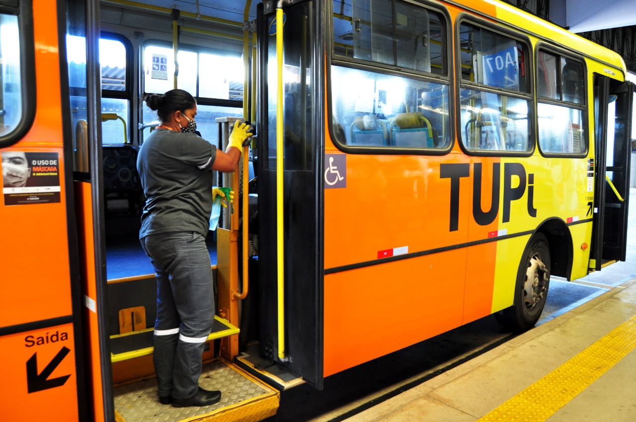 A higienização da frota de ônibus que compõe o sistema de transporte coletivo fica cargo da empresa TUPi, sob a fiscalização da Semuttran. O objetivo do serviço de higienização dos terminais, destacou Vanderlei Quartarolo, diretor de Transportes da Semuttran, é preservar a saúde dos usuários do sistema, atendendo aos protocolos sanitários e recomendações das autoridades científicas e médicas, para evitar a propagação da Covid-19. “O trabalho é contínuo e se intensificou com a pandemia. A limpeza inclui a lavagem do piso dos terminais, dos assentos, corrimãos, banheiros, plataformas e bilheterias, locais que recebem contatos mais próximo dos usuários, além de disponibilizar álcool em gel”.