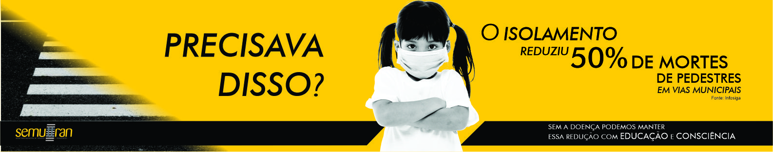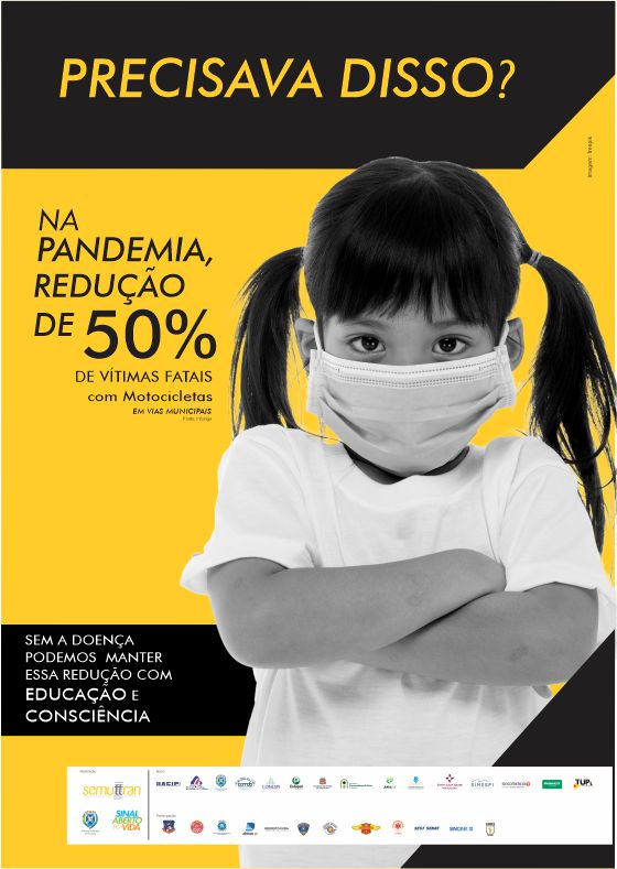 Ainda segundo Akira, os efeitos da pandemia, que mudaram a rotina de pessoas no mundo todo e em Piracicaba, foram usados na campanha Precisava Disso?. “Durante a pandemia tivemos uma redução de 50% no número de acidentes fatais de motociclistas e pedestres nas vias municipais, segundo dados do Infosiga. A mensagem busca alertar aos motoristas e pedestres que tal redução também pode ser mantida com educação e respeito no trânsito”, observa.