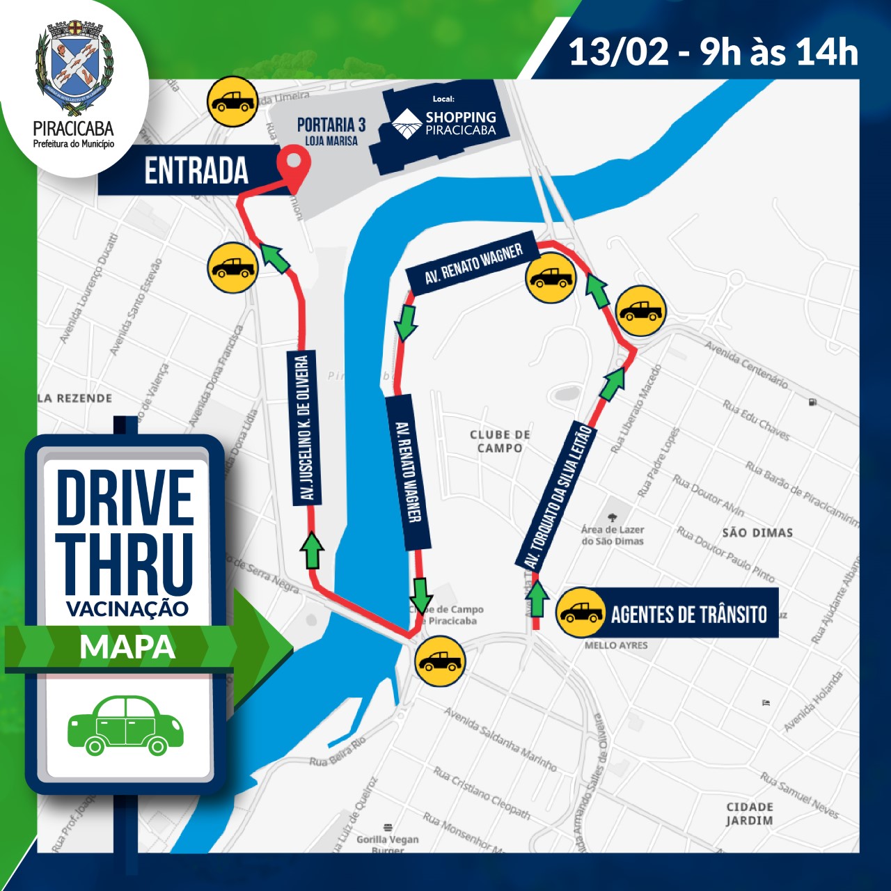 Dando continuidade ao processo de vacinação contra a Covid-19, a Prefeitura realiza neste sábado, 13/02, o segundo drive-thru em parceria com o Shopping Piracicaba. Nessa ação, que acontecerá das 9h às 14h, serão vacinados exclusivamente profissionais de saúde indicados (leia abaixo), com entrada e saída pelo portão 3 (entrada loja Marisa). É obrigatório que todos os profissionais façam antecipadamente um pré-cadastro pelo site vacinajá.sp.gov.br para facilitar o atendimento. Na semana passada, foi realizado um drive-thru, direcionado, também, a idosos com 90 anos ou mais. Desta vez, serão vacinados somente profissionais de saúde. De acordo com a Vigilância Epidemiológica (VE), a vacinação será destinada a médicos, biomédicos, enfermeiros, farmacêuticos, fisioterapeutas, odontólogos e técnicos e auxiliares das áreas mencionadas. Assistentes sociais, fonoaudiólogos, nutricionistas, psicólogos, terapeutas ocupacionais e técnicos e auxiliares das áreas mencionadas, além de profissionais que atuam em clínicas, instituições de saúde pública ou particular (cuidadores de idosos, trabalhadores de limpeza), também estarão aptos para receber a vacina. Todos os profissionais de saúde, além do comprovante de residência e do CPF, devem apresentar vinculação ativa a um serviço de saúde, como holerite, crachá da empresa, comprovante de ISS, registro na carteira profissional ou declaração emitida pelo serviço de saúde.