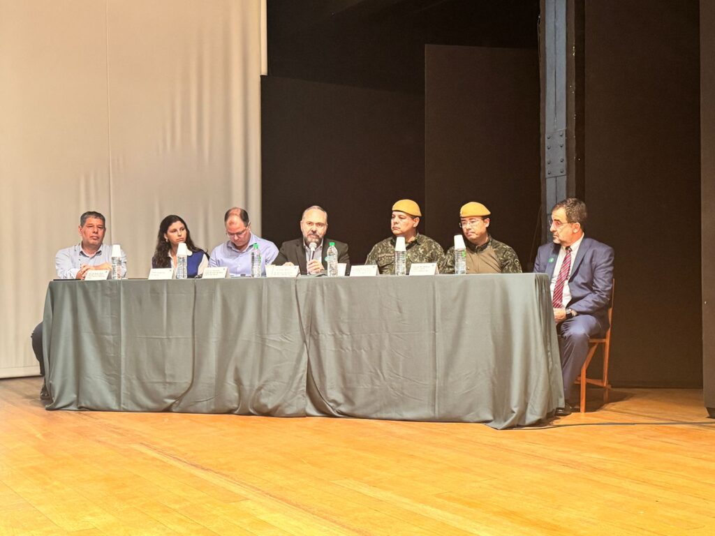 Com objetivo de promover o diálogo regional e fortalecer a atuação conjunta na proteção dos recursos hídricos de 62 municípios que integram a bacia dos rios Piracicaba, Capivari e Jundiaí (PCJ), representantes da Prefeitura de Piracicaba participaram hoje, 15/05, de reunião do Grupo de Fiscalização Integrada das Águas do Rio Tietê (GFI-Tietê), promovida pela Secretaria de Estado do Meio Ambiente, Infraestrutura e Logística (Semil/SP), no Teatro Erotídes de Campos, no Engenho Central. Representou o prefeito Helinho Zanatta, o secretário-executivo de Meio Ambiente, Edson Marcus Bucci. Também esteve presente Natássia Bonini Vidas, gerente ambiental do Semae, que representou Ronald Pereira, presidente da autarquia.