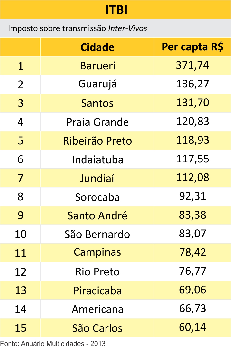Ainda na justificativa da Prefeitura, é explicado que o valor per capta de Piracicaba é bem abaixo dos arrecadados em outros municípios, como Barueri, Guarujá, Santos, Jundiaí, Sorocaba, Ribeirão Preto entre outros, conforme dados disponíveis em 2013 (ver tabela abaixo).