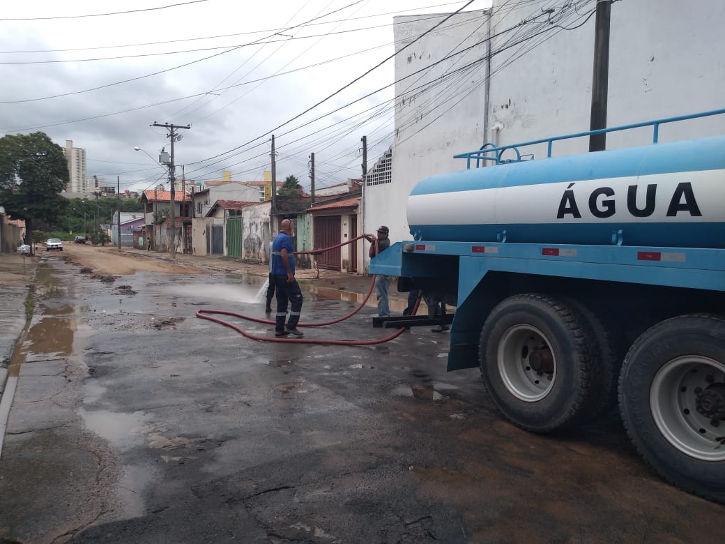 Os servços são realizados por equipes da Sedema, Semob, Defesa Civil, Águas do Mirante. Na ação foi utilizada água bruta (não potável)