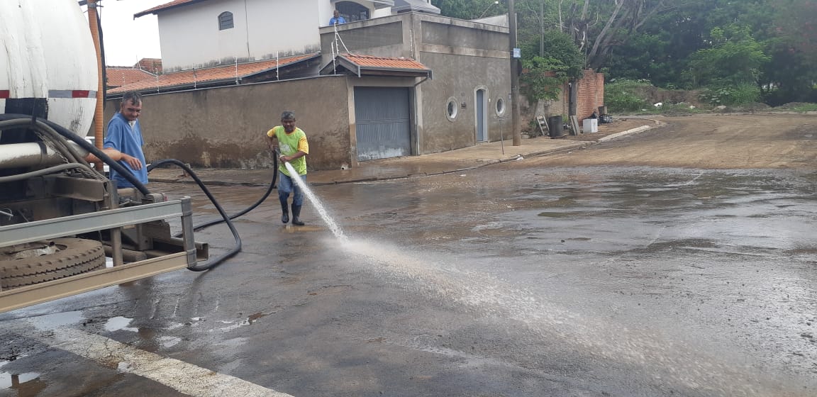 Equipes da Prefeitura realizaram serviços de limpeza e lavagem das ruas nas regiões localizadas próximas a rios e ribeirões que transbordaram nas chuvas de segunda-feira